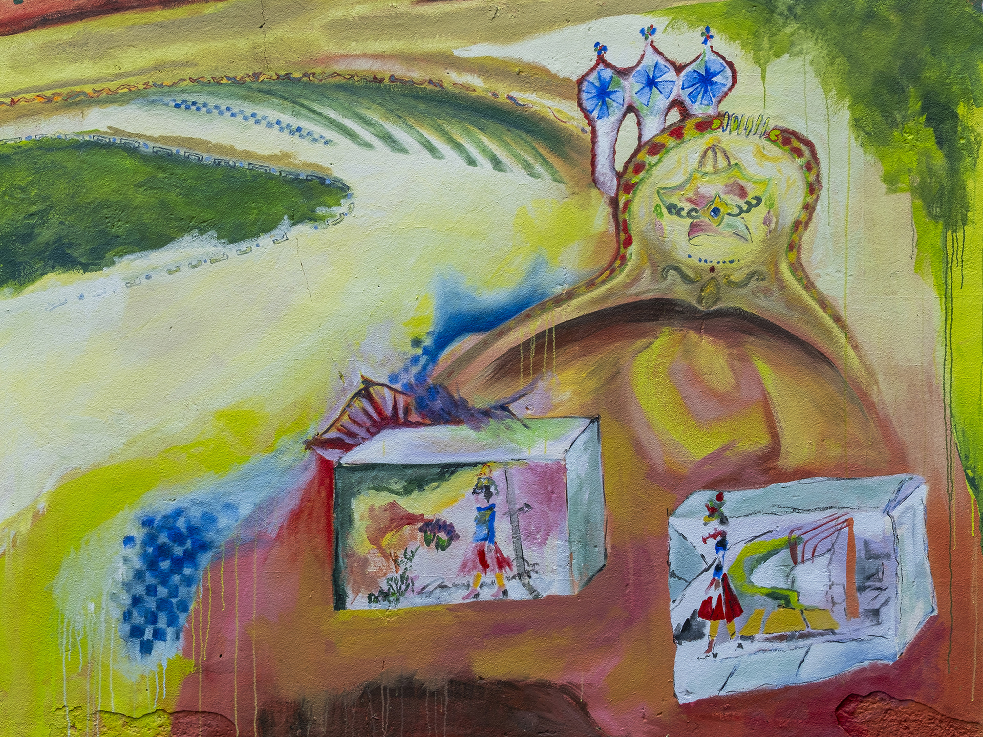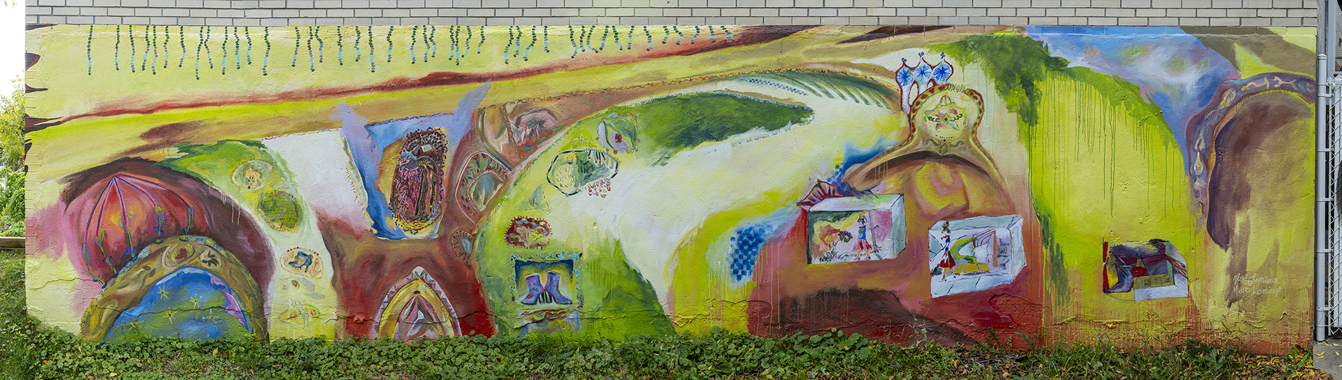 . 2023. 242,89 cm x 971,55 cm. Peinture au latex. Murale peinte en collaboration avec Marc Lemieux sur le mur du 3005, boulevard Saint-Joseph Est, à Montréal. Photographies par Morgane Clément-Gagnon.