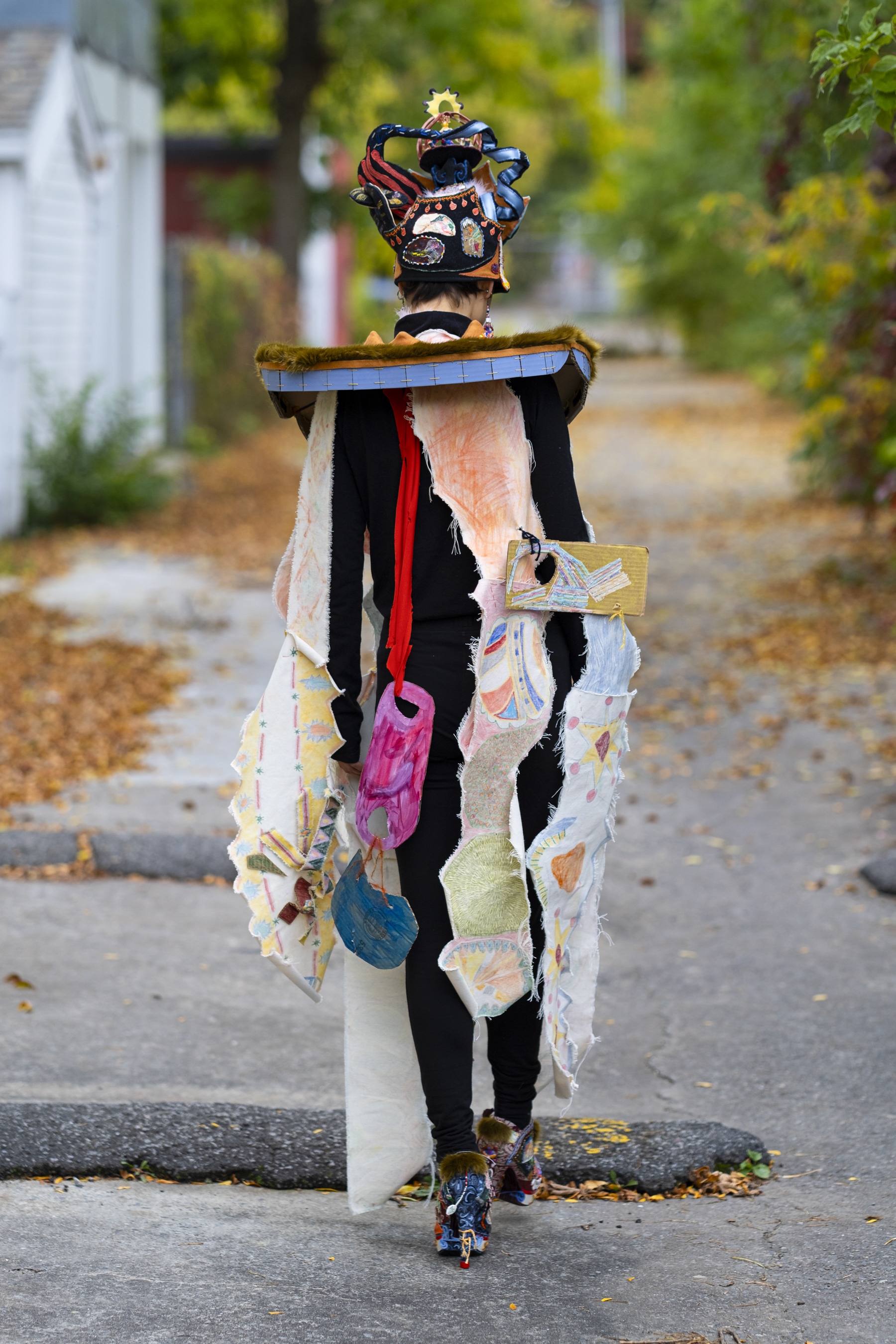 . 2023. Performance déambulatoire devant une murale peinte en collaboration avec Marc Lemieux sur le mur du 3005, boulevard Saint-Joseph Est, à Montréal. 30 minutes. Photographies par Morgane Clément-Gagnon.