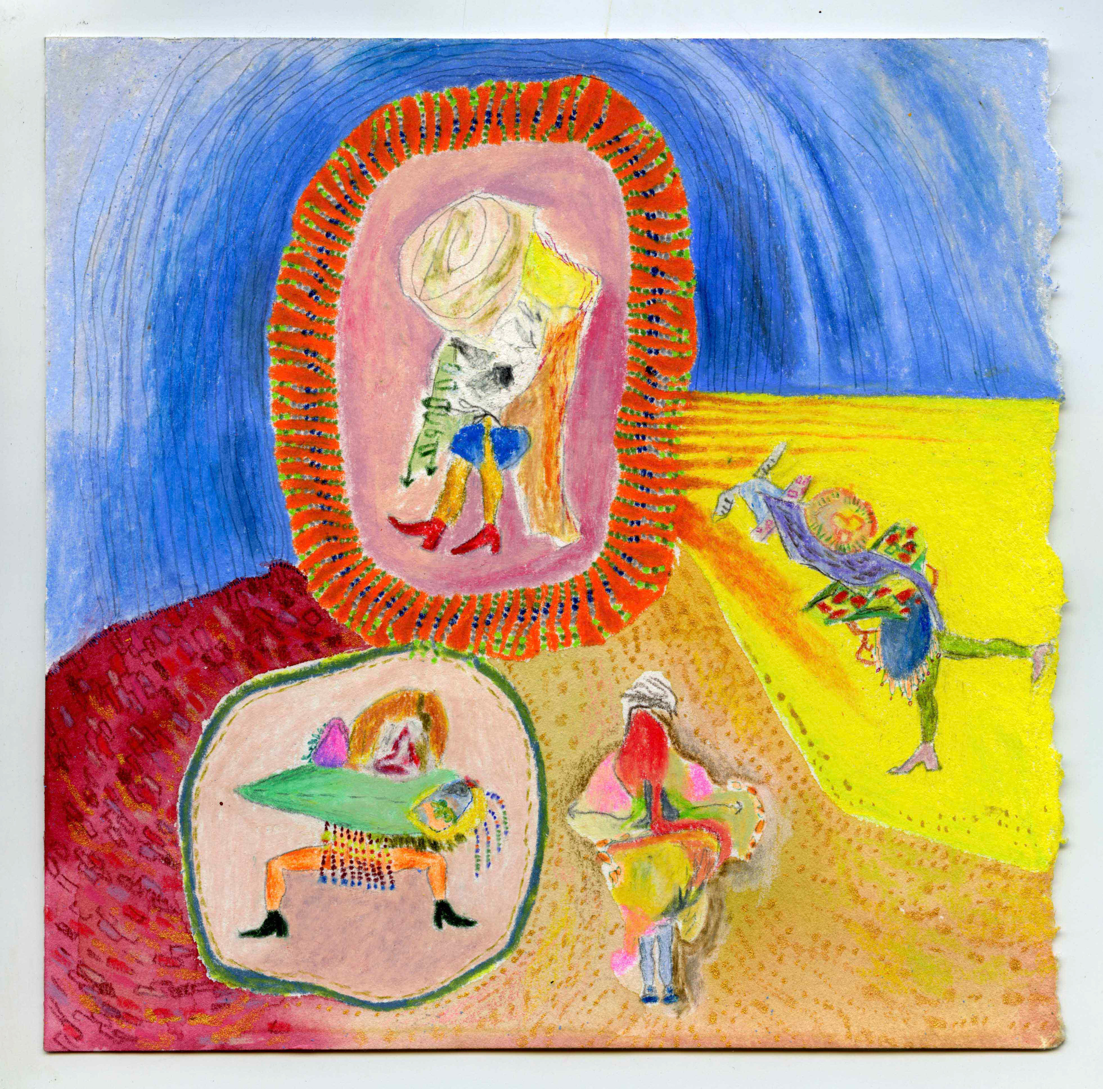 . 2023. 15 cm x 15 cm. Crayon de couleur, graphite, feutre et encre acrylique sur papier.