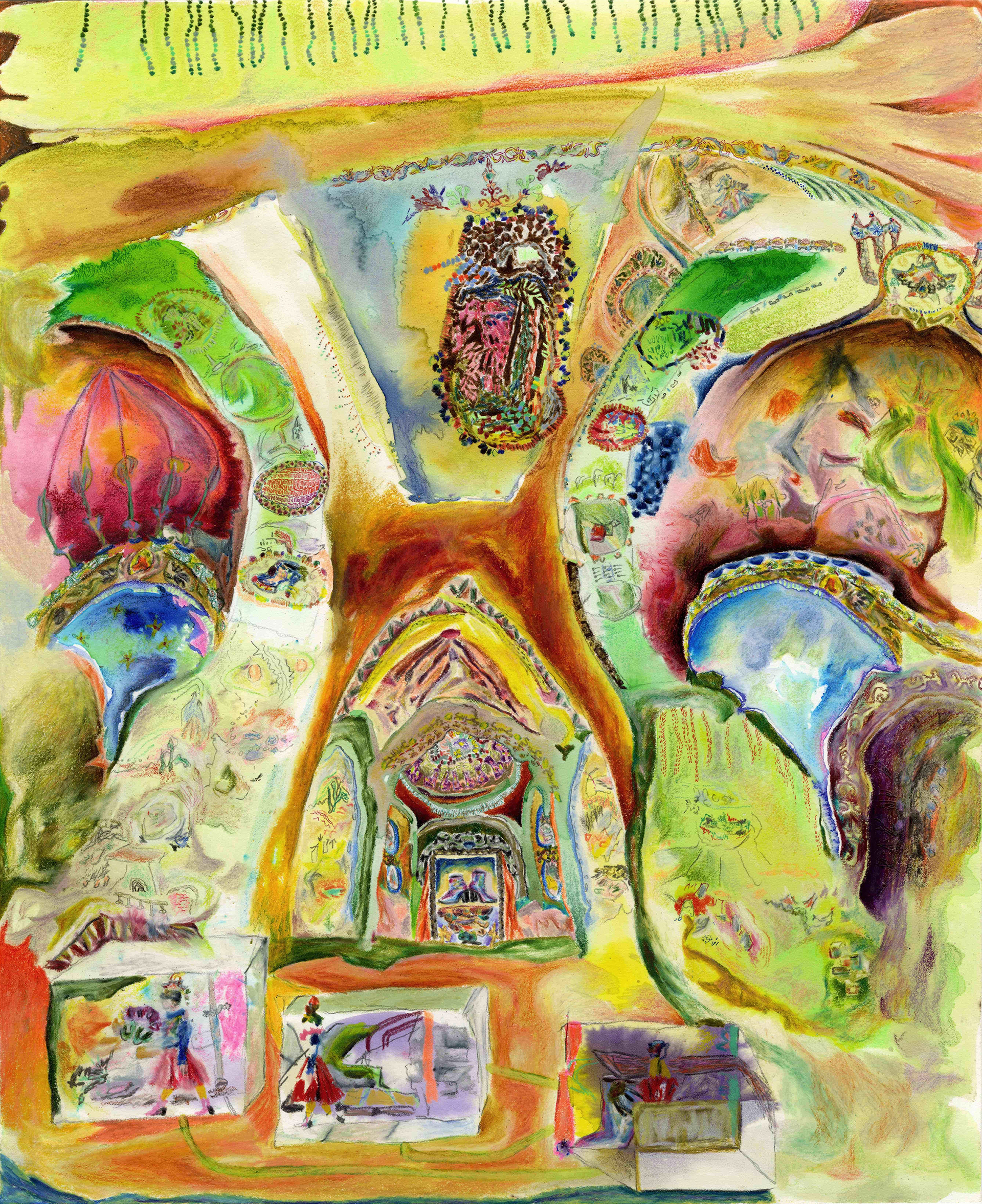 . 2023. 28 cm x 23 cm. Crayon de couleur, graphite, feutre et aquarelle sur papier.