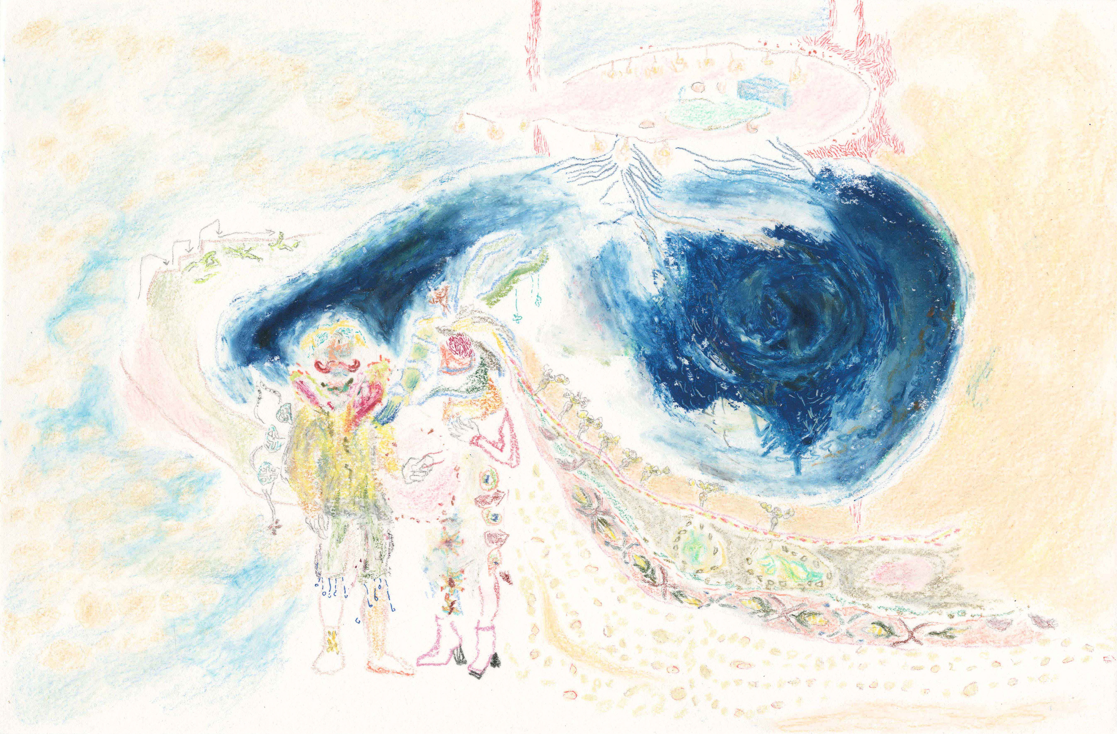 . 2022. 15 cm x 23 cm. Crayon de couleur, pastel gras, feutre et graphite sur papier.